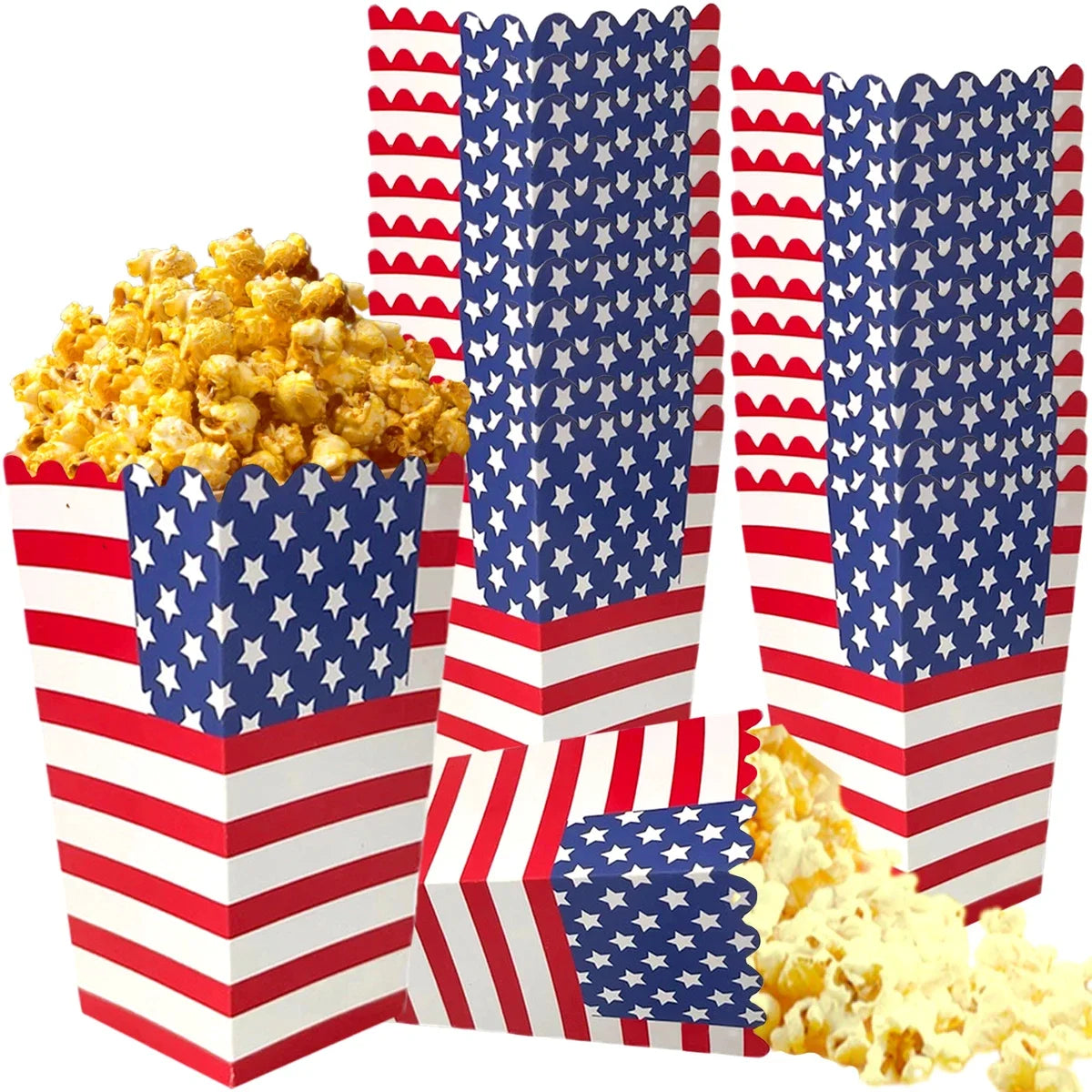 These popcorn boxes are designed for festive snack serving during Independence Day celebrations and patriotic gatherings.